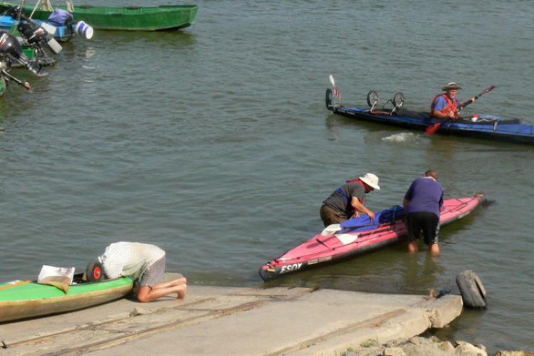 • printre cei 55 de vâslaşi s-a numărat şi brăileanul Sorin Preda, care “pilotează” un kaiac de producţie proprie • aceştia s-au odihnit o noapte pentru a o lua de la capăt astăzi cu vâslitul, destinaţia finală fiind localitatea Sfântu Gheorghe • maratoniştii Dunării au plecat din Germania pe 26 iunie şi trebuie să străbată distanţa de 2.515,15 km, până la destinaţie
