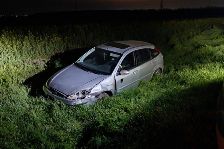 Mașină abandonată după un accident produs de un tânăr care nu avea permis și era posibil drogat