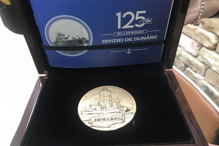 Emisă de către Regia Autonomă Monetăria Statului, în ediție limitată, medalia aniversară „125 de ani de la înființarea Diviziei de Dunăre” a fost concepută, precizează organizatorii evenimentului „ca arc peste timp din anul 1896 până în anul 2021, stilizând pe fațetele sale patru elemente importante ale dezvoltării structurii fluviale a Forțelor Navale Române”. Pe una din fațete se află bustul marelui om politic Mihail Kogălniceanu, cel care a sintetizat importanța Dunării pentru poporul român prin cuvintele „Cheia mântuirii noastre este drumul Dunării spre Marea largă deschisă tuturor”.