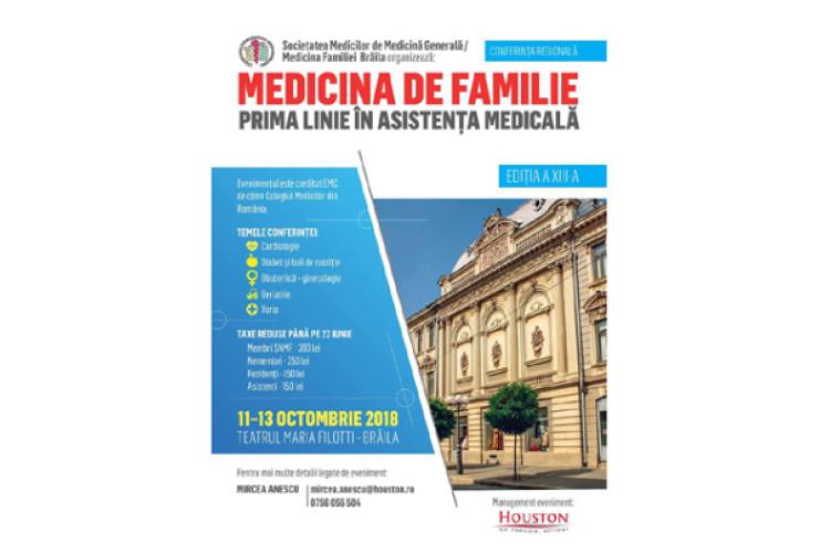 În perioada 11-13 octombrie 2018, la Teatrul „Maria Filotti” din Brăila are loc cea de a Xlll-a conferinţă regională „Medicina de familie – prima linie în asistenţa medicală”. Evenimentul organizat de SOCIETATEA MEDICILOR de MEDICINĂ GENERALĂ / MEDICINA FAMILIEI BRĂILA este dedicat medicilor de familie şi este creditat EMC de către Colegiul Medicilor din România.