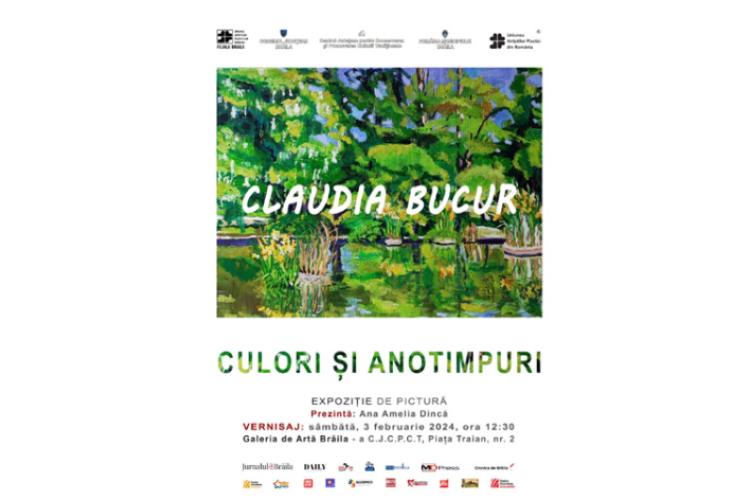 Astfel, Consiliul Județean Brăila – prin Centrul Județean pentru Conservarea și Promovarea Culturii Tradiționale – alături de Uniunea Artiștilor Plastici din România (UAPR) – Filiala Brăila și Primăria Municipiului Brăila organizează, în ziua de sâmbătă, 3 februarie 2024, ora 12.30, la Galeria de Artă din Piața Traian nr. 2, Vernisajul Expoziției personale de pictură „Culori și Anotimpuri”, semnată de Claudia Bucur. Potrivit organizatorilor, vernisajul de sâmbătă este un eveniment de anvergură, un proiect de suflet al artistei cu pasiune pentru artă, în general și pentru pictură, în special, prin compozițiile alese, peisaje, natură statică și multe, foarte multe culori.