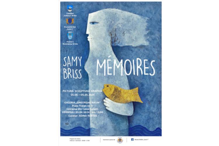 Iubitorii de artă și de frumos sunt așteptați vineri, 5 aprilie, la Galeria „Gheorghe Naum” a Muzeului Brăilei „Carol I”, începând cu ora 13.00, la vernisajul Expoziției MÉMOIRES a artistului internațional de origine română Samy Briss, numit „Chevalier des Arts et des Lettres”, de către guvernul francez. Curator și inițiator al demersului expozițional este criticul de artă Adina Rențea, iar organizator din partea Muzeului Brăilei „Carol I”, Alina-Ruxandra Mircea, șef Secția Artă. Expoziția va fi deschisă publicului brăilean până pe 5 mai a.c.