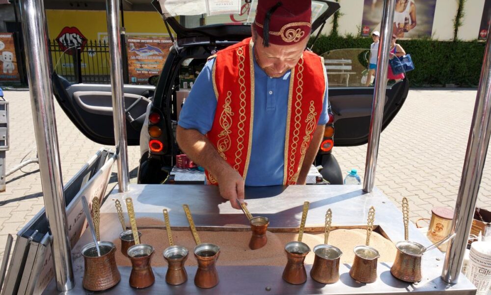 E-o încântare să-ți petreci după-amiaza pe malul Dunării, când se mai potolește căldura, în compania meșterilor populari și a creatorilor de frumos veniți la târg. Primjăria a promis că, de data aceasta, nu o să mai fie fumul înecăcios, care-ți tăia respirația, al nenumăratelor grătare. În schimb, poți să-ți alinți papilele gustative cu o cafea de calitate, făcută la nisip, de Iulius Iancu, ploieșteanul îmbrăcat turcește. Din două fraze, te convinge să bei nu una, ci două cafele făcute în vestitul ibric de cupru. „Cafeaua preparată așa este deosebită prin faptul că fierbe în nisip, la propriu, pe toată suprafața ibricului, care este, întotdeauna, din cupru. În plus cafeaua conține cardamon, un condiment arăbesc care-i îmbunătățește calitățile”, ne spune cafegiul cu fes, din Ploiești. Cum să reziști tentației?