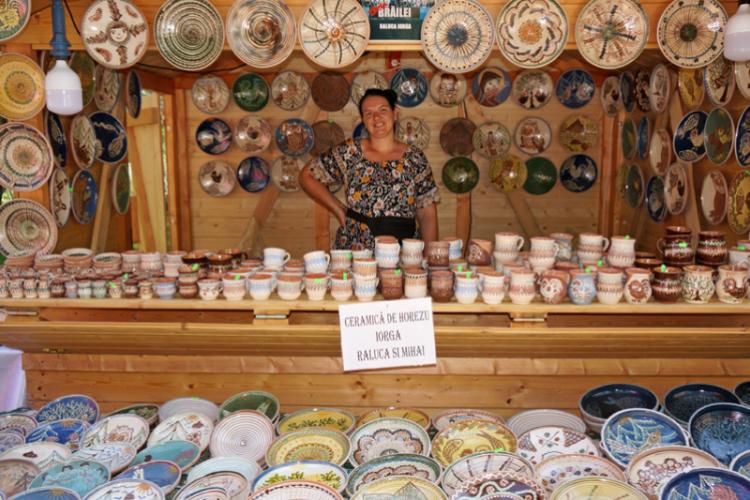 Nu poți să vii la târg și să nu fii plăcut surprins de bogăția și diversitatea obiectelor expuse pe tarabe. Am întâlnit-o aici pe Raluca Iorga, meșter popular de la Horezu.