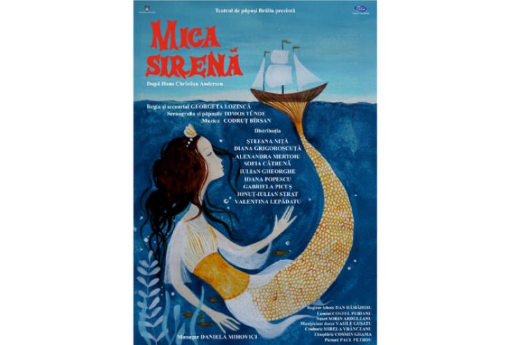 Vacanța a luat sfărșit și echipa teatrului brăilean îi invită pe cei mici să savureze spectacolele din această nouă stagiune care tocmai ce debutează duminică, 22 septembrie, la ora 11.00. Și nu oricum, ci cu o premieră, ”Mica sirenă”, regia și scenariul fiind semnate de Georgeta Lozincă. Actorii Ștefana Niță, Diana Grigoroșcuță, Alexandra Mertoiu, Sofia Cătrună, Iulian Gheorghe, Ioana Popescu, Gabriela Picuș, Ionuț-Iulian Strat și Valentina Lepădatu, alături de scenograful Tünde Tomos, vor pune în scenă mult îndrăgita poveste a lui H.C. Andersen, pe muzica lui Codruț Bîrsan.