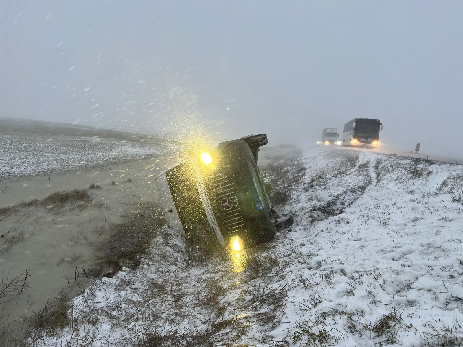 Un microbuz s-a răsturnat în afara părții carosabile pe DN 21, între localitățile Viziru și Însurăței, pe fondul condițiilor meteo dificile.