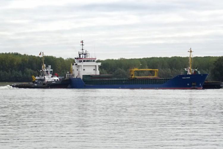 Mii de cai putere pentru deblocarea vaporului eşuat pe mijlocul Dunării, la Brăila