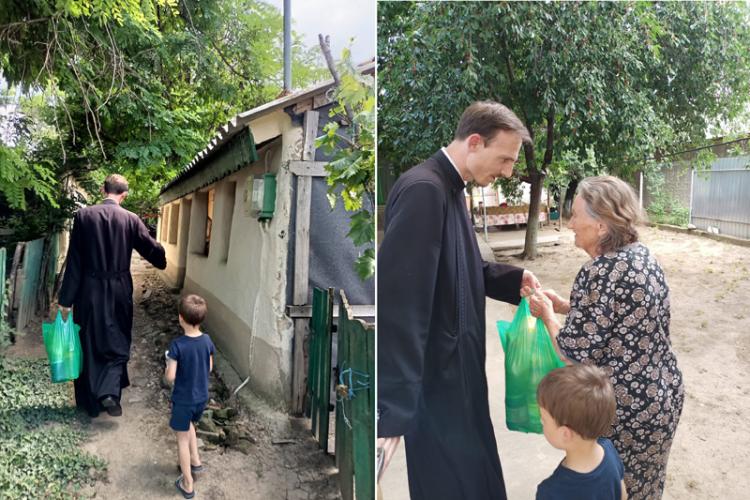 Milostenie la Ianca. Părintele Ciprian Gache a împărțit alimente bătrânilor nevoiași