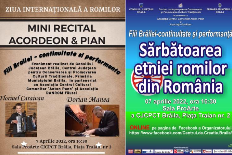 De Ziua internațională a romilor, Sala ProArte a Centrului de Creație Brăila, din Piața Traian nr. 2, găzduiește joi, 7 aprilie a.c., de la ora 16.30, un inedit minirecital de acordeon și pian susținut de Florinel Caraivan și de Dorian Manea în cadrul evenimentului intitulat „Fiii Brăilei – continuitate și performanță”. Evenimentul este organizat de Consiliul Județean Brăila, Primăria Municipiului și Centrul Județean pentru Conservarea și Promovarea Culturii Tradiționale Brăila (CJCPCT), în parteneriat cu Asociația Centrul Cultural Comunitar „Anton Pann” Brăila și Asociația DANROM Făurei.