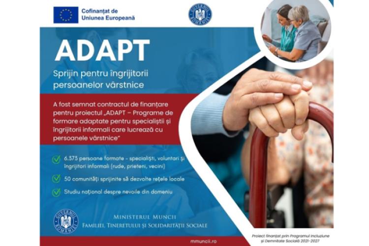 Săptămâna trecută, Ministerul Muncii, Familiei, Tineretului și Solidarității Sociale (MMFTSS) a semnat contractul de finanțare pentru proiectul „ADAPT – Programe de formare adaptate pentru specialiștii și îngrijitorii informali care lucrează cu persoanele vârstnice”, un demers strategic menit să răspundă unei nevoi importante din societatea românească: creșterea calității și accesibilității îngrijirii pentru persoanele vârstnice.