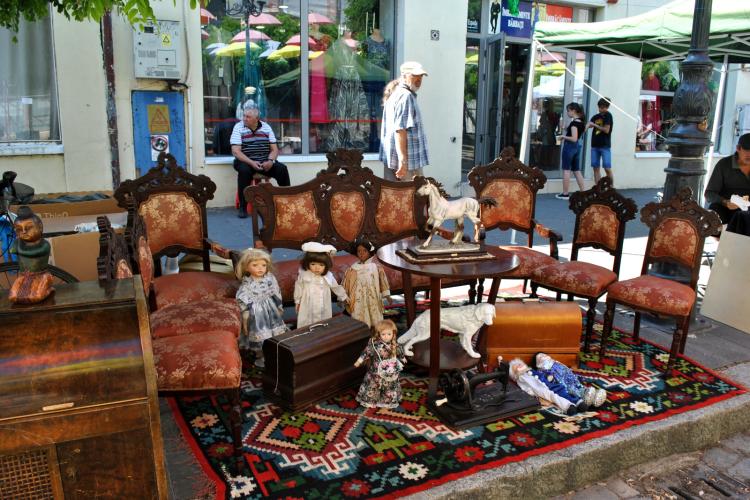Robi, un alt anticar, sosit tocmai din Timișoara, ne-a spus că participă la târg de cel puțin 15 ani. A adus cu el, de fiecare dată, antichități din Spania, Italia și Franța, care mai de care mai atrăgătoare, de la statuete, sfeșnice și gablonzuri și până la picturi pe pânză înrămate cu gijă. Îl găsiți dis-de dimineață la intersecția Străzii Mihai Eminescu cu Petru Maior.