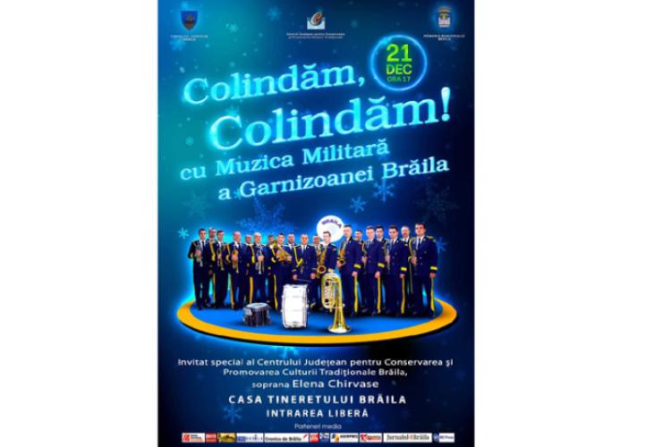 Sub genericul „Colindăm, colindăm”,Muzica Militară a Garnizoanei Brăila condusă de lt. Raul Ionuț Badale, va susține un concert de colinde, cu participarea sopranei Elena Chirvase, invitat special al Centrului de Creație Brăila.