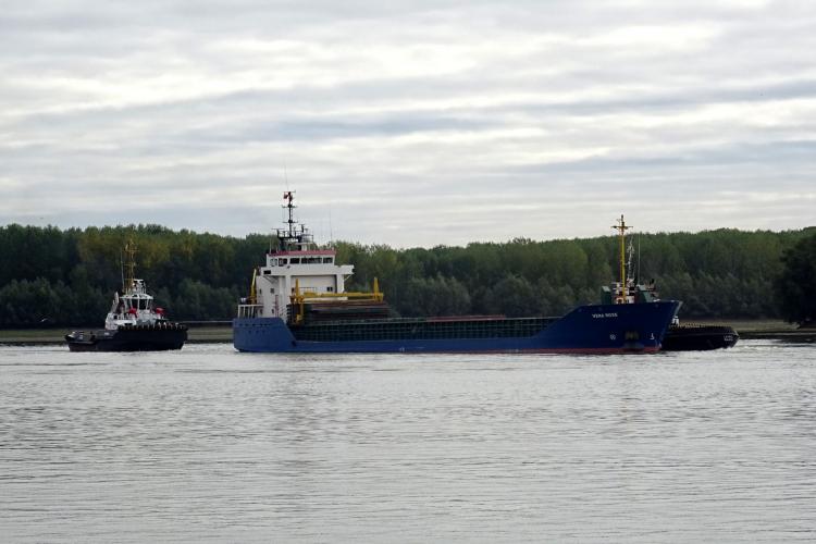 Nava maritimă Vera Rose, aflată sub pavilionul de complezenţă Vanuatu, a fost pusă în mişcare, duminică, 30 septembrie, după ce a stat blocată pe mijlocul Dunării, într-o zonă cu apă mică, timp de aproape trei zile. Pentru ca vaporul să poată fi pus din nou pe linia de plutire a trebuit ca o parte din marfa pe care o avea la bord să fie descărcată într-o barjă. Astfel, din cele 4.200 tone de porumb aflate în magaziile navei, 800 de tone au fost descărcate, iar în acest mod prora s-a ridicat din bancul de nisip unde rămăsese blocată, pentru punerea în mişcare a vaporului fiind nevoie, totuşi, şi de ajutorul primit de la remorcherul “Farul”, din dotarea Administraţiei Fluviale a Dunării de Jos (AFDJ) Galaţi, după cum ne-a informat directorul adjunct al acestei instituţii, Dorian Dumitru. După ce şi-a reînceput navigarea în condiţii de siguranţă, nava maritimă a reîncărcat în cală cele 800 t de porumb şi a plecat spre destinaţie. În urma incidentului de la Brăila, nava nu a suferit nicio avarie. Armatorul va trebui, totuşi, să suporte contravaloarea operaţiunilor de deblocare la care au participat, de joi până duminică, două remorchere: “Farul”, din dotarea AFDJ Galaţi, şi “Lainici”, din dotarea Şantierului Naval Vard Brăila. Pentru o oră de intervenţie a remorcherului “Farul”, de exemplu, armatorul a avut de plată câte 800 de euro. “Farul” are două motoare a câte 2.500 cai putere fiecare, fiind mult mai puternic decât “Lainici”, care are tot două motoare, însă de “doar” 600 CP fiecare. Joi a intervenit doar “Lainici”, însă de vineri dimineaţă cele două remorchere au lucrat în tandem. Totuşi, în ciuda miilor de cai putere care şi-au unit forţele, nava maritimă Vera Rose nu a putut fi urnită până când nu s-a descărcat o parte din marfa aflată la bord.