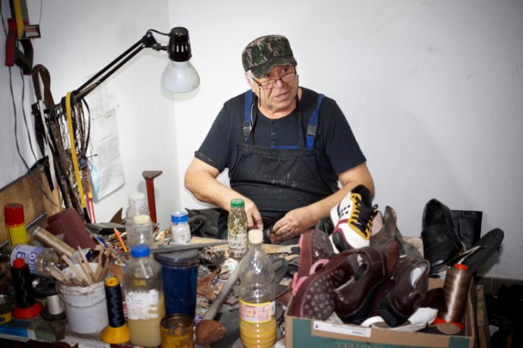 În atelierul inundat de miros de cauciuc și prenadez, meșterul Dudulea folosește aceleași unelte, vechi de zeci de ani. Nu mai confecționează pantofi de lux, ca odinioară, ci îi cârpește pe cei vechi. Nu pune mare preț pe sculele moderne, le preferă pe cele artizanale, dar mai bune, făcute de țiganii fierari. Nu e de mirare că și-a adus aici mașina de cusut veche, poloneză, cu ajutorul căreia coase piele groasă de patru milimetri și al cărui angrenaj este german. Deși are mai bine de 100 de ani, mașinăria merge ca unsă, pentru că e așezată pe rulmenți. „Lucru nemțesc!”, spune zâmbind meșterul.