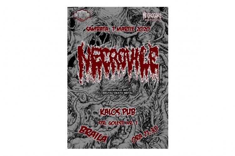 Surpriză de proporții pentru amatorii genului death metal din Brăila. Trupa Necrovile din Cluj-Napoca va concerta, sâmbătă, 7 martie, în Kalos Pub (Str. Golești nr. 1), în intervalul orar 21:30 – 23:59. Grupul activează încă din anul 2001 și de-a lungul carierei a lansat două albume de studio, intitulate The Pungency of Carnage (2009) și Engorging the Devourmental Void (2013), de asemenea a avut nenumărate concerte în țară și în afară.