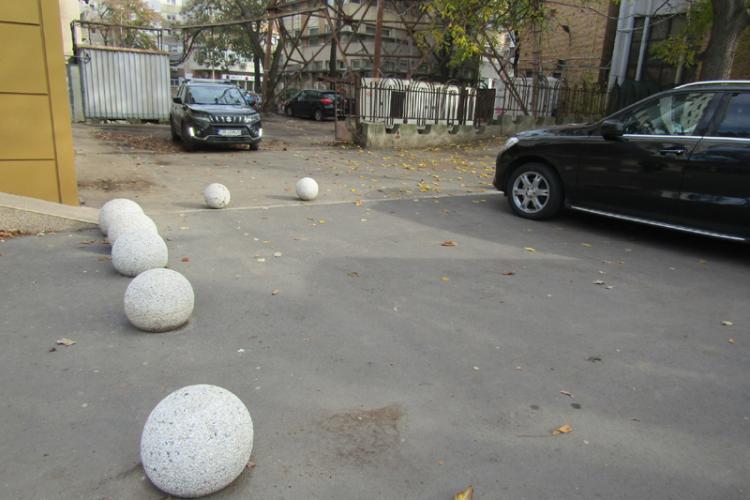 Referitor la tupeul unor automobilişti, aceştia au lărgit zona prin care pătrund cu maşinile printr-un gang, spre şi dinspre str. Unirii, parchează de mult timp pe trotuar sau în spate la Pomodoro. Iar pentru acest lucru (la fel cum s-a întâmplat în zona staţiei de la Murgoci sau la Piaţa Mare), aceştia, şi cei care fac aprovizionarea cu marfă, au îndepărtat/împrăştiat sferele din beton mozaicat, de parcă ar fi jucat cu ele biliard, unele ajungând inclusiv pe spaţiul verde. Iar acum, motivându-se insuficienţa locurilor de parcare, dar şi din comoditate, probabil că trotuarele se vor ocupa din nou cu maşini.