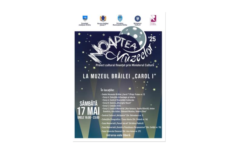 Sâmbătă, 17 mai, între orele 16:00 și 23:00, timp de șapte ore, muzeografii brăileni, în parteneriat cu celelalte instituții de cultură din Brăila, școli și licee, dar și cu reprezentanții etniilor, au pregătit zeci de evenimente, care mai de care mai interesante, derulate fie la sediul central al Muzeului Brăilei „Carol I”, fie în celelalte locații (Colecțiile de Arheologie și Istorie, Centrul Diversității Culturale, Galeria „Gheorghe Naum”, Colecțiile de Artă, Centrul Cultural Nicăpetre, Colecțiile Etnografice/ Casa Alexiu, Casa Memorială „Panait Istrati”, Casa Memorială „D. P. Perpessicius” și Casa Umorului Desenat). Își dau concursul ansambluri de dansuri, soliști vocali, artiști plastici, meșteri populari, elevi ai Liceului de Artă „Darclee”, ai Școlii Populare de Artă, dar și Corul bărbătesc „Armonia”. Intrarea este liberă la toate evenimentele.