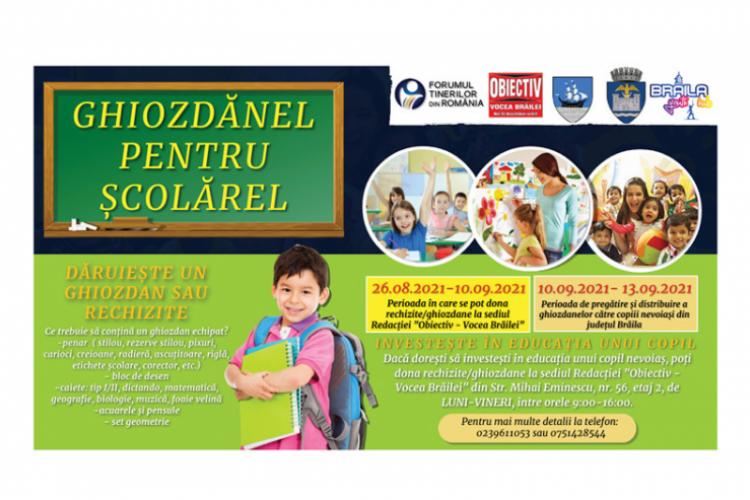 Campania ”Ghiozdănel pentru şcolărel” este derulată de Forumul Tinerilor Brăila, Centrul de Tineret – Brăila Youth Hub, Asociaţia ”Pentru Adevăr” şi cotidianul ”Obiectiv – Vocea Brăilei”, în parteneriat cu Primăria Municipiului Brăila şi Consiliul Judeţean Brăila.