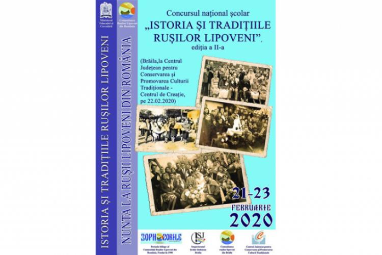 Concursul şcolar naţional “Istoria şi tradiţiile ruşilor lipoveni” este adresat elevilor din clasele VI-XII care, împreună cu profesorii lor de limba rusă maternă şi de istorie şi tradiţii, vor prezenta la Brăila scenete şi programe de 10-15 minute, cântece reprezentative pentru momentele din ceremonialul nunţii la ruşii lipoveni. De asemenea, participanţii vor aduce fotografii vechi, de arhivă şi vor povesti despre momentele surprinse în fotografii, vor viziona filme tematice, de animaţie şi vor participa la jocuri interactive prevăzute în program. Concursul şcolar naţional va oferi prilejul de a reflecta munca în echipă: a elevilor, cadrelor didactice, părinţilor, cu toţii implicându-se în organizarea şi derularea acestuia.