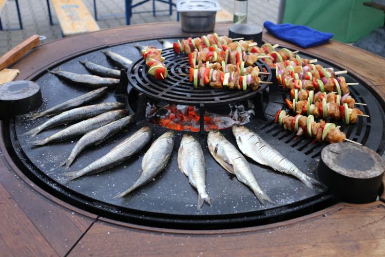 Nu doar el, ci și doamna Marin se implică în fiecare detaliu. Ea nu s-a dat la o parte de la a întoarce peștele pe plită, supraveghind atent ca totul să fie gătit la perfecție – rumen, suculent și cu acel miros care îți lasă gura apă doar privindu-l. La stand, coada se forma rapid, mai ales pentru fructele de mare: midii cu sos de vin, calamari la grătar și creveți sotați cu usturoi. ”Am stat 20 de minute la rând, dar a meritat. Midii așa bune am mai mâncat doar la malul mării. M-au convins să le trec pragul vara viitoare ”, ne spune un brăilean încântat.