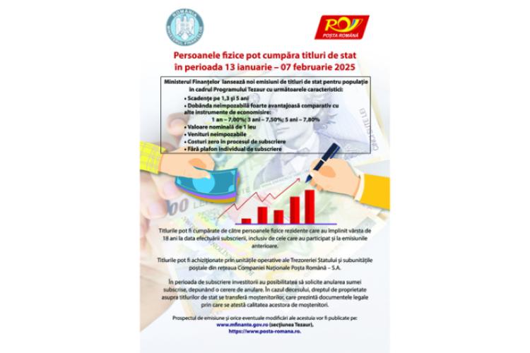 Prospectul de emisiune și orice eventuale modificări ale acestuia sunt publicate la secțiunea Datorie publică, www.posta-romana.ro.