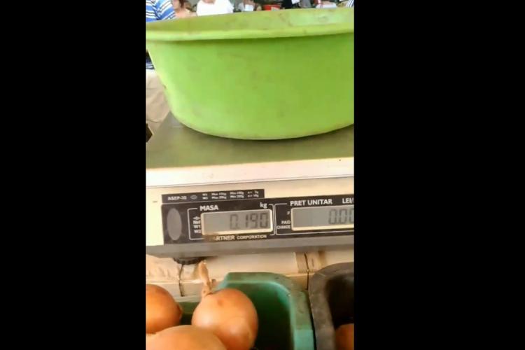 • un cititor al cotidianului nostru ne-a trimis la redacţie un filmuleţ din care reiese că o vânzătoare include în greutatea mărfii şi ligheanul cu care pune legumele pe cântar, înşelându-şi astfel clienţii cu aproape 200 de grame la fiecare cântărire • în luna iulie, Protecţia Consumatorilor şi Poliţia au făcut o amplă acţiune de control în Piaţa Mare, fiind sancţionaţi atunci mai mulţi comercianţi care foloseau cântare neverificate metrologic • se pare că amenzile aplicate atunci nu au fost suficiente pentru a-i determina pe comercianţi să nu mai umble cu “ocaua mică”