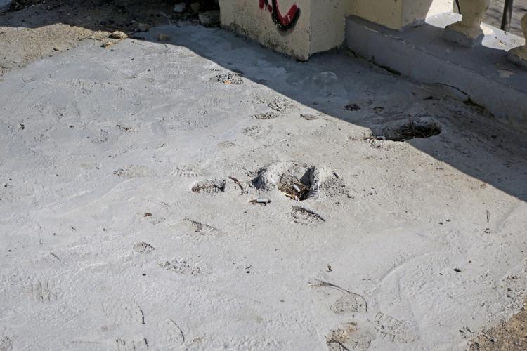 • asta s-a întâmplat la propriu, după cum se poate vedea în tălpile imprimate în betonul proaspăt turnat • totul, lângă fostul Cazino de la faleză, aflat la doi paşi de Primărie