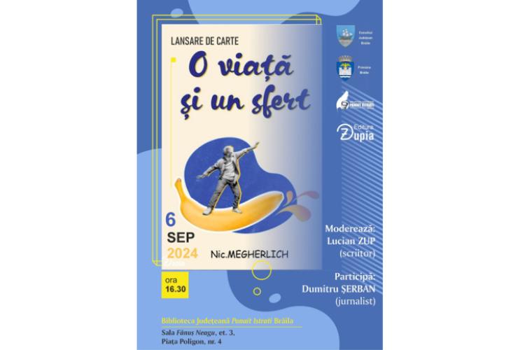 Vineri, 6 septembrie, începând cu ora 16.30, la Sala „Fănuș Neagu” a Bibliotecii Județene „Panait Istrati” Brăila (Piața Poligon nr. 4) va avea loc lansarea volumului de schițe „O viață și un sfert”, de Neculai Megherlich. Moderează scriitorul Lucian Zup. Prezintă jurnalistul Dumitru Șerban.