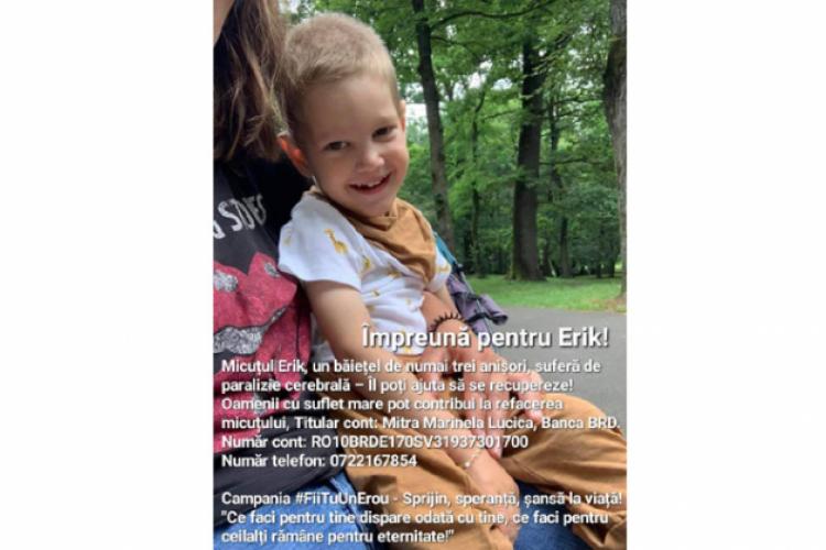 Cei care doresc să fie la curent cu progresul şi starea de sănătate a micuţului Erik se pot înscrie în grupul de Facebook „Împreună pentru Erik Andrei”.