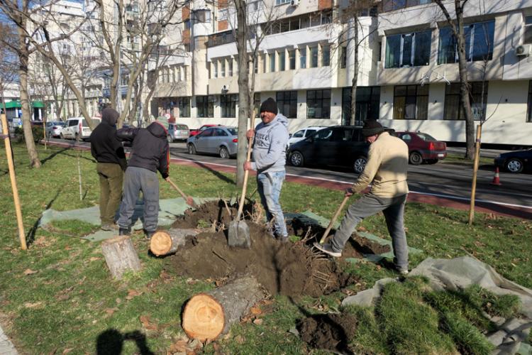 • ”Seroplant” a reușit, zilele trecute, să finalizeze îndepărtarea de pe domeniul public a celor circa 1.000 de arbori doborâți de viscolul din luna noiembrie • acum urmează partea și mai dificilă: dezgroparea rădăcinilor acestor copaci • operațiunea a început, joi, 1 februarie, de pe bulevardul Independenței și urmează să continue pe toată raza municipiului, astfel încât pe locul copacilor rupți de vânt să poată fi plantați alții