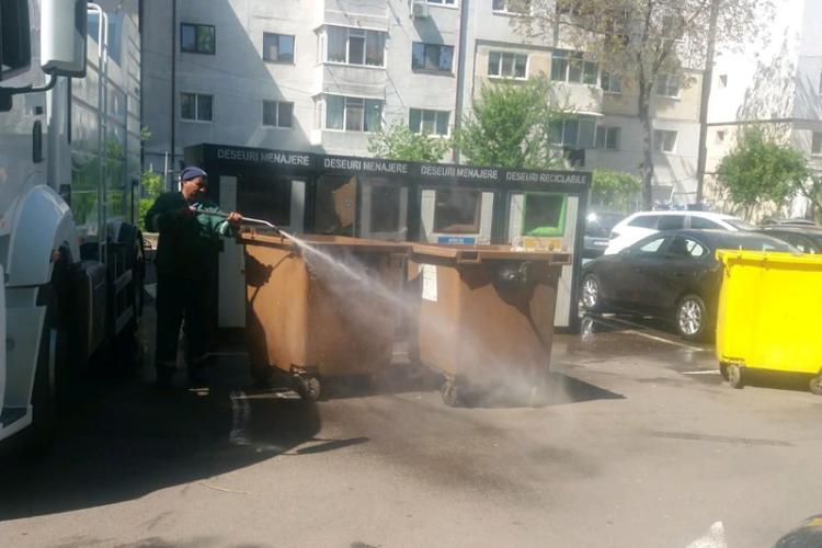 Operatorul de salubritate ”Polaris” spală pubelele dintre blocuri
