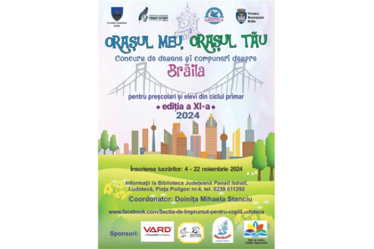 Secţia de Împrumut pentru Copii. Ludoteca din cadrul Bibliotecii Judeţene „Panait Istrati” Brăila organizează cea de a XI-a ediție a concursului „Oraşul meu, oraşul tău”.