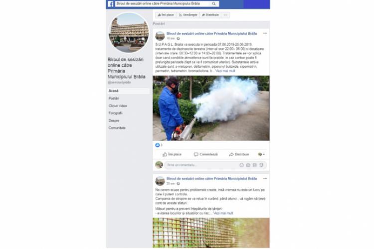 De ceva vreme, pe Facebook a fost înfiinţată o pagină unde utilizatorii ce locuiesc în municipiul Brăila sunt încurajaţi să semnaleze problemele întâlnite în oraş. Fotografia de profil ilustrează Palatul Administrativ. Prima postare figurează din luna martie a acestui an, iar cele mai recente din cursul acestei săptămâni. Ultimele teme abordate sunt cele ale aplicării tratamentelor împotriva ţânţarilor şi străzile inundate din municipiu, în urma ploilor recente.