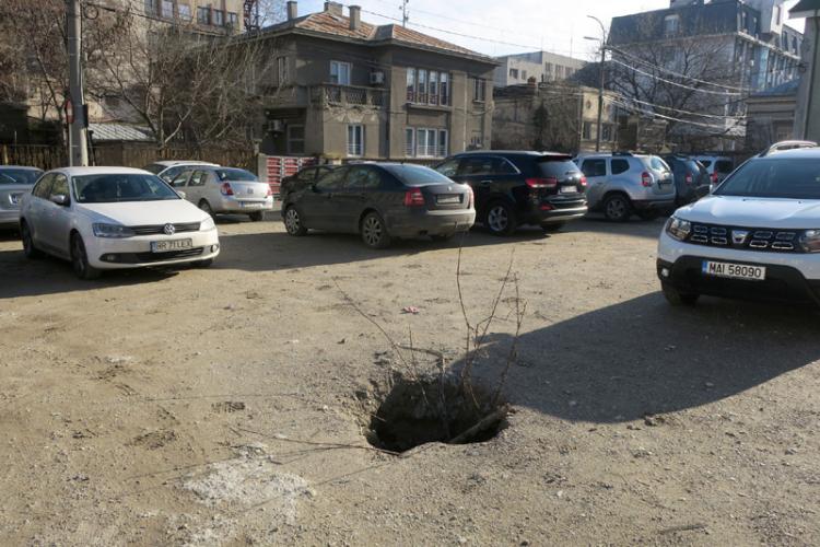 * terenul viran din Centrul Vechi unde își țin autoturismele pe timpul zilei angajații Inspectoratului de Poliție nu a fost amenajat nici până la ora actuală într-o parcare propriu-zisă, deși Consiliul Județean promite de doi ani acest lucru * între timp, pământul a început să se surpe, o groapă apărută chiar în mijlocul parcării indicând faptul că acolo ar putea exista o veche pivniță sau hrubă, ceea ce ar complica și mai mult procedurile birocratice pentru sistematizarea zonei
