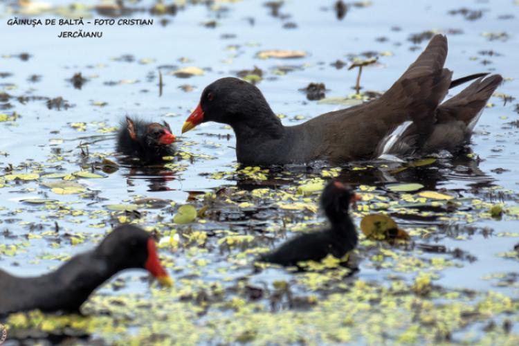 Voi continua să vă prezint în acest articol alte trei specii de păsări. Cele trei specii prezentate astăzi sunt: Găinușa de baltă (Gallinula chloropus), Lișița (Fulica atra) și Nagâțul (Vanellus vanellus).