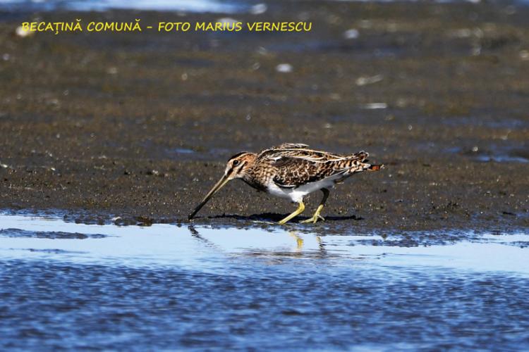 Becațină comună (Gallinago gallinago) – Cuibărește în mlaștini și zone umede, deseori pe marginea lacurilor și a râurilor. Iarna stă în zone de coastă sau mlăștinoase. Părțile superioare sunt de culoare maronie cu pete mai deschise la culoare, părțile inferioare sunt de culori palide, cu dungi negre pe piept, iar banda de la ochi este întunecată și mărginită de două benzi mai deschise. Picioare scurte, aripi lungi, iar ciocul distinctiv este alungit mult. Masculul seamănă foarte bine cu femela, deși ea are ciocul puțin mai lung. Lungimea corpului este de 25-27 cm, anvergura de 44-47 cm, masa medie corporală de 110 g. Se hrănește cu nevertebrate și plante. În libertate, longevitatea medie este de trei ani.