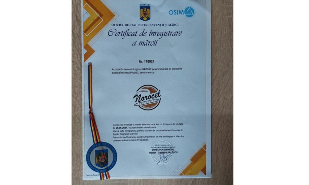Soții Livia și Iulian-Norocel Ilie au înregistrat marca NOROCEL la Oficiul de Stat pentru Invenții și Mărci (OSIM) încă de la înființarea patiseriei.