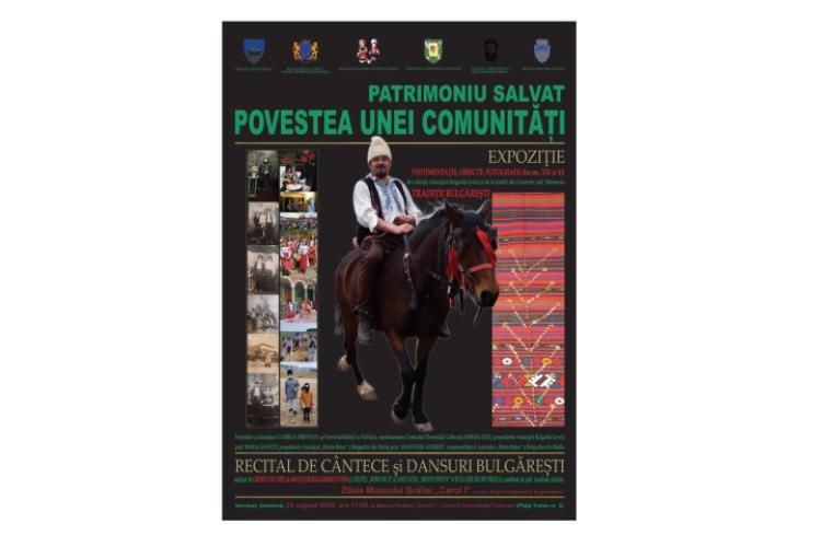 Duminică, 25 august, de la ora 11.00, la Muzeul Brăilei „Carol I” – Centrul Diversitații Culturale (Piața Traian 3) are loc vernisajul expoziției temporare „Patrimoniu salvat. Povestea unei comunități. Vestimentație, obiecte și fotografii din sec. XIX – XX”. Concomitent, în Sala „Regele Ferdinand I și Regina Maria” va avea loc un recital de cântece și dansuri bulgărești. Cele două evenimente sunt incluse în Zilele Muzeului Brăilei „Carol I”. Organizatori: Asociația Balgarski Izvori, Uniunea Bulgară din Banat România, Consiliul Județean Brăila, Muzeul Brăilei „Carol I”- Centrul Diversității Culturale, Primăria Municipiului Brăila, Asociația „Hristo Botev” a Bulgarilor din Brăila.