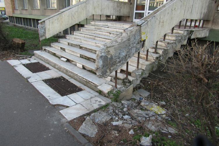• de ani de zile, spațiile de acces în unele blocuri sau spații comerciale situate în zone intens circulate din municipiu arată sub orice critică • municipalitatea și asociațiile de proprietari pasează răspunderea, astfel că nimeni nu se grăbește cu reabilitarea