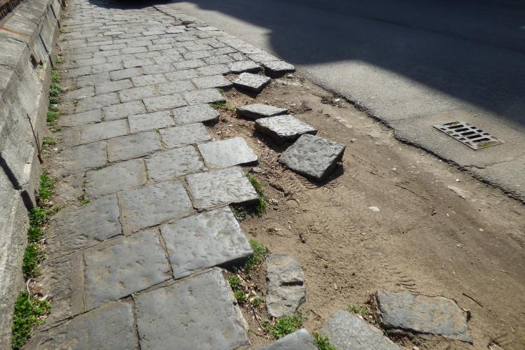 Pericole la tot pasul, pe lângă Grădina Mare: dale vulcanice “extrase” la greu şi obstacole în calea pietonilor!