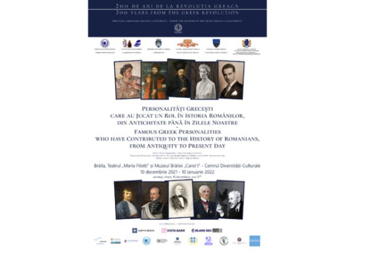Astfel, Uniunea Elenă din România, Comunitatea Elenă Brăila, Primăria Municipiului Brăila, Consiliul Județean, Teatrul „Maria Filotti” și Muzeul Brăilei „Carol I” – Centrul Diversității Culturale vă invită să vizitați Expoziția „Personalități grecești care au jucat un rol în istoria românilor, din antichitate până în zilele noastre”, deschisă în perioada 10 decembrie 2021-10 ianuarie 2022 la Teatrul „Maria Filotti” (Strada Mihai Eminescu nr. 2, fostă Regală) și Muzeul Brăilei „Carol I” – Centrul Diversității Culturale (Piața Traian nr. 3). Vernisajul ineditei expoziții are loc vineri, 10 decembrie 2021, la ora 12.30.