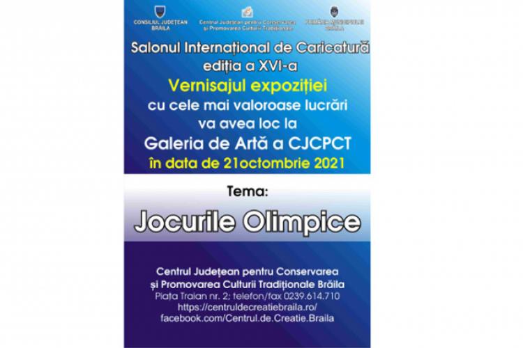 Astfel, Consiliul Județean Brăila, Primăria Municipiului și Centrul Județean pentru Conservarea și Promovarea Culturii Tradiționale (CJCPCT – Centrul de Creație) Brăila organizează, în ziua de 21 octombrie 2021, la Galeriile de Artă, din Piața Traian nr 2, vernisajul celei de-a XVI-a Ediții a Salonului Internațional de Caricatură. Având ca temă Jocurile Olimpice, ediția de anul acesta a Salonului reunește nu mai puțin de 711 lucrări realizate de 302 caricaturiști înscriși în concurs, reprezentând 57 de țări: Algeria, Arabia Saudită, Argentina, Armenia, Austria, Azerbaijan, Belgia, Brazilia, Bulgaria, Camerun, Cehia, China, Cipru, Columbia, Croația, Cuba, Egipt, Elveția, Estonia, Filipine, Franța, Germania, Grecia, India, Indonezia, Iran, Iraq, Israel, Italia, Kazahstan, Letonia, Liban, Macedonia, Maroc, Mexic, Muntenegru, Nicaragua, Peru, Polonia, Portugalia, Regatul Unit al Marii Britanii, România, Rusia, Serbia, Singapore, Siria, Slovacia, Slovenia, Spania, Sri Lanka, SUA, Sudan, Thailanda, Turcia, Ucraina, Uruguay, Uzbekistan.
