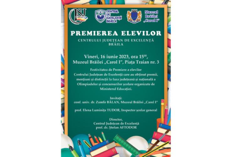 „În cel de-al doilea an al existenței sale (după noua organizare a centrelor de excelență, stabilită prin ordin al Ministrului Educației, în anul 2020), Centrul Județean de Excelență Brăila îi premiază pe elevii care au frecventat unul din cursurile sale și care au obținut rezultate notabile la olimpiade și concursuri școlare. Peste 300 de elevi au urmat cursurile celor 12 discipline ale Centrului Județean de Excelență în anul școlar 2022-2023, iar vineri, 16 iunie, peste 70 dintre ei vor primi diplome, medalii și cărți pentru premiile obținute la fazele județeană și națională ale olimpiadelor și concursurilor școlare”, a precizat dr. Ștefan Aftodor, directorul CJE Brăila.
