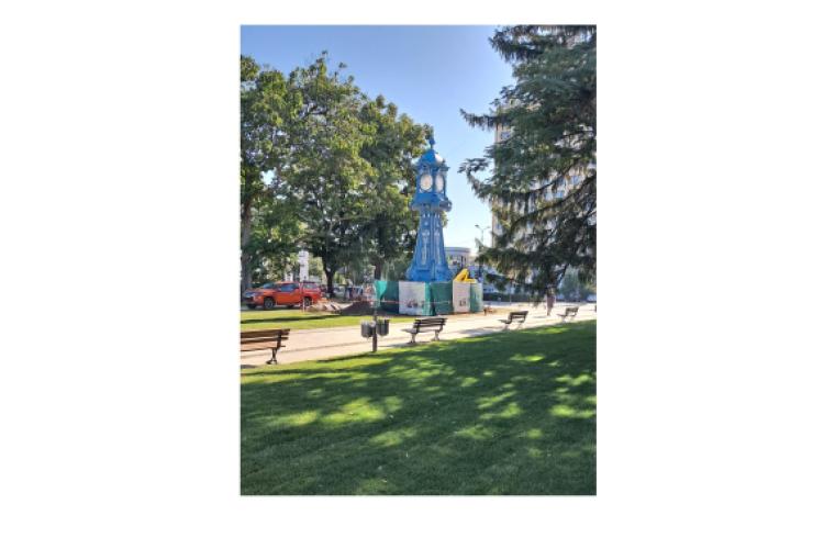 • ceasul-turn, simbolul Brăilei s-a întors acasa * orologiul reabilitat a fost adus de la atelierul unde a fost reparat și revopsit și a fost așezat pe poziție cu o macara specială * a fost finalizată montarea pe spațiul verde a unui sistem de irigații computerizat, iar în locul vegetației crescute sălbatic se pune acum gazon • cât de curând, va fi adus înapoi și ceasul-turn, care a trecut printr-un complex proces de restaurare • soclul a fost refăcut și este gata să susțină orologiul emblematic al Brăilei, pentru încă o sută de ani