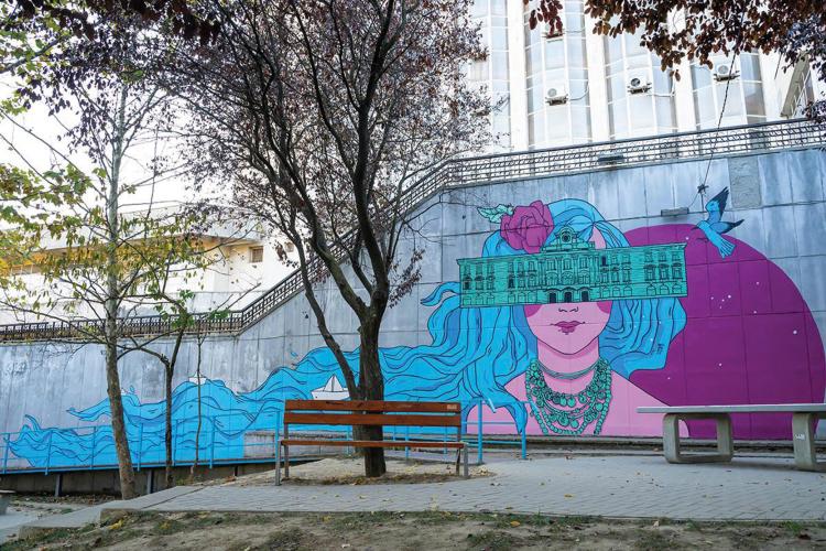 Pictură murală cu Chira Chiralina pe Esplanadă, lângă amfiteatrul de pe Faleză