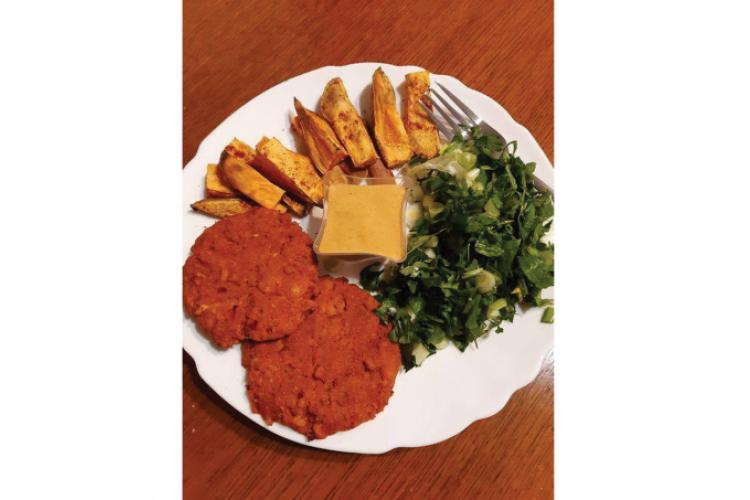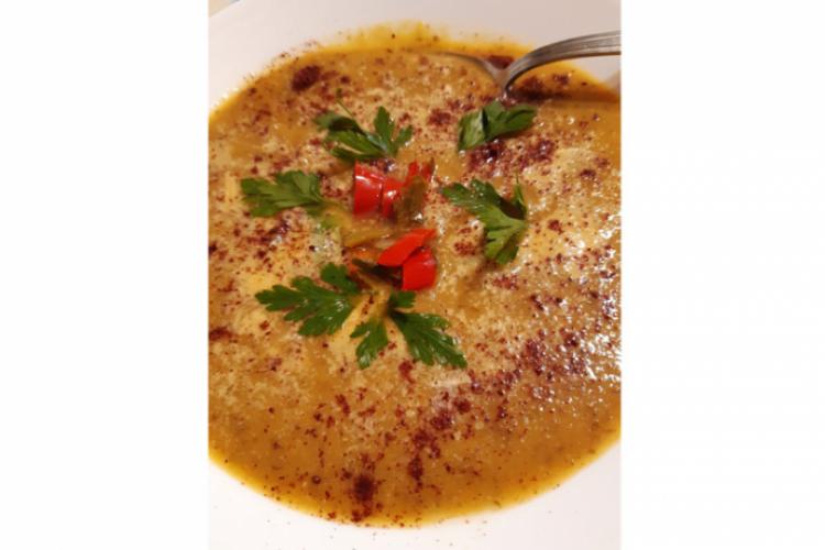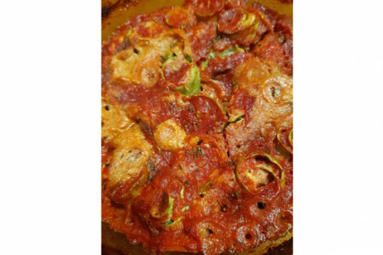 Ingrediente: o ceapă roșie, un morcov, un ardei capia,1/2 dovlecel, 4-5 ciuperci de mărime medie, 3-4 roșii uscate, 50 gr quinoa, 150 gr tofu, 1 lingură de bulion, oregano, un praf de boia de ardei, un praf de turmeric, o lingură ulei de măsline, pătrunjel.