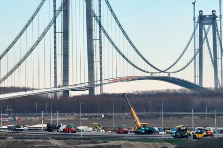 • este data avansată de viceprim-ministrul Sorin Grindeanu (ministrul Transporturilor) după ce a vizitat șantierul și discuțiile cu constructorul • mai exact, potrivit promisiunilor primite, Podul suspendat peste Dunăre ar trebui deschis circulației la finele lunii aprilie, cel târziu în luna mai • Grindeanu nu s-a ferit să precizeze că în momentul de față există mai multe procese pe rol între constructorii podului și autoritățile din România pe tema întârzierilor • deocamdată a pierdut statul român pentru că CNAIR nu a predat amplasamentul fără sarcini, așa cum s-a angajat • cine se face vinovat pentru această atitudine, cel puțin suspectă, din partea CNAIR, nu se știe • Grindeanu speră să câștige și partea română penalități de întârziere și astfel să nu fim buni de plată milioane de euro despăgubiri către constructori
