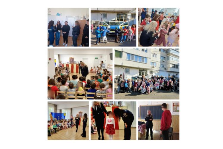 Teme abordate de polițiști în cadrul întâlnirilor cu elevii de la mai multe unități de învățământ: prevenirea victimizării minorilor prin agresiuni sexuale, discriminare (Proiect Național- Fără discriminare), accidente rutiere (Școala Siguranței Tedi), trafic de persoane, trafic și consum de substanțe interzise, dispariții, delincvență juvenilă.