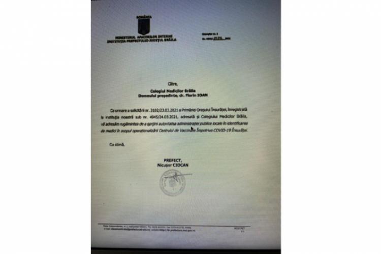 Prefectul județului Brăila, Nicușor Ciocan, a făcut o gafă de proporții! Chiar la începutul acestei luni, pe 1 aprilie, Instituția Prefectului – Județul Brăila, la conducerea căreia a fost învestit Ciocan, a trimis o solicitare la Colegiul Medicilor Brăila în care a adresat rugămintea de a sprijini autoritatea administrației publice locale în identificarea de medici, în scopul operaționalizării centrului de vaccinare împotriva COVID-19 Însurăței. Nimic anormal până aici dacă nu ar fi existat și un destinatar decedat cu nume și prenume, așa cum scrie negru pe alb în acel document: ”Domnului președinte al Colegiului Medicilor Brăila, dr. Florin IOAN”, regretatul medic chirurg brăilean, care s-a stins din viață în urmă cu 10 ani.