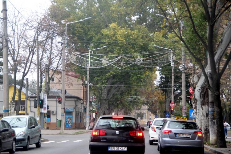 * în municipiu au fost deja montate mai multe corpuri de iluminat specifice Crăciunului * operaţiunea a început devreme, pentru ca până pe 1 Decembrie să fie montate toate ornamentele